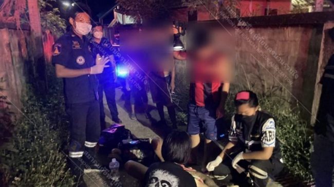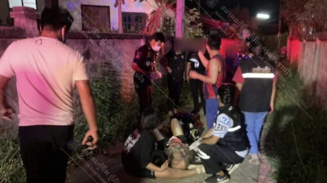 ที่ 10 มิถุนายน 2565 ร.ต.ท.หญิง ภราภรณ์ ไทยใหม่ พงส.สถ.เมืองน่าน จ.น่าน ได้รับแจ้งจากศูนย์วิทยุนนทบุรีแจ้งว่ามี เหตุทะเลาะวิวาท มีผู้ได้รับบาดเจ็บถูกของมีคมแทง บริเวณซอยข้างโรงแรมเอื้องคำ บ้านสวนหอม ตำบลผาสิงห์ อำเภอเมืองน่าน จังหวัดน่าน รุดไปพบนายสมพร สุขทั่วญาติ ผู้ใหญ่บ้านสวนหอม รักษาการแทนกำนันตำบลผาสิงห์ จนท.อาสาชุดเหยี่ยวฟ้า ทีมกู้ชีพสมาคมกู้ชีพกู้ภัยนครน่านรวมใจ และ กู้ชีพกู้ภัยน่าน กำลังช่วยกัน ปฐมพยาบาล ณ จุดเกิดเหตุ ผู้ได้รับบาดเจ็บชายวันรุ่น 1 ราย ถูกแทงใต้ราวนมข้างซ้าย มีอาการซึม กู้ชีพกู้ภัยน่านเปลี่ยนถ่ายกับรถกู้ชีพนครน่านและนำส่ง รพ.น่านต่อมานายสมพร สุขทั่วญาติ ผู้ใหญ่บ้านสวนหอม รักษาการแทนกำนันตำบลผาสิงห์ พร้อมด้วยเจ้าหน้าที่ชุดตำรวจสามารถควบคุมตัวนายเอ นามสมมุติ