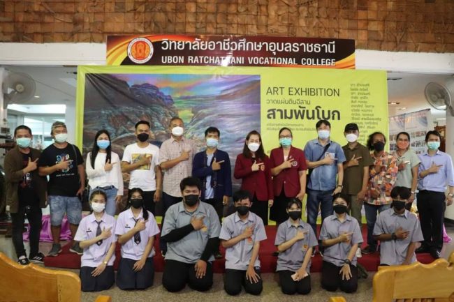 อาชีวะอุบลฯ จับมือกลุ่มศิลปินอีสานตอนล่าง สมาคมศิลปินอีสาน ลงนามความร่วมมือสืบสานงานศิลปะร่วมกันพร้อมเปิดนิทรรศการโครงการ “วาดแผ่นดินอีสาน” สามพันโบก ที่หอศิลป์ราชธานีศรีวนาไล วิทยาลัยอาชีวศึกษาอุบลราชธานี รับเทศกาลประเพณีแห่เทียนเข้าพรรษาเมืองดอกบัว
