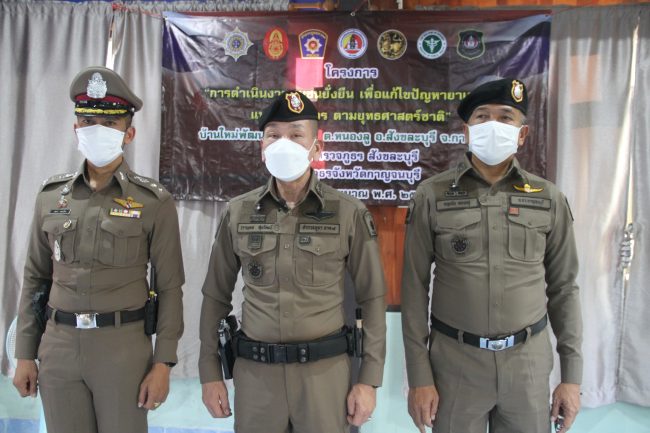 อีกทั้งสร้างภูมิคุ้มกันทางจิตใจ การติดตามดูแล ปัจจุบันมีหลายชุมชนในพื้นที่อำเภอสังขละบุรี โดยเฉพาะบ้านใหม่พัฒนาที่ประสบความสำเร็จในการดำเนินการบำบัดฟื้นฟูการใช้ยาเสพติด ใช้ชุมชนเป็นศูนย์กลางที่สมารถดูแลผู้ใช้ยาเสพติด ภายใต้ โครงการดำเนินงานชุมชนยั่งยืน เพื่อแก้ไขปัญหายาเสพติดแบบครบวงจรตามยุทธศาสตร์ชาติ ที่สถานีตำรวจภูธรสังขละบุรี ได้ดำเนินงานในห้วงระยะเวลาที่ผ่านมา ทั้งนี้สำนักงานตำรวจแห่งชาติ จะได้นำไปเป็นแนวทางปฎิบัติในการดูแลแก้ไขปัญหาผู้ใช้ยาเสพติดในชุมชนต่างๆที่มีปัญหาทั่วประเทศต่อไปทั้งนี้ในห้วยระยะเวลาที่ผ่านมา สภ.สังขละบุรีได้ร่วมกับภาคีเครือข่าย ที่ประกอบด้วย ฝ่ายปกครองอำเภอสังขละบุรี สาธารณสุข ทหาร กอ.รมน. ผู้นำชุมชน สถานศึกษา และภาคประชาชน ในการดำเนินโครงการฯ โดยเริ่มตั้งแต่ประชุมเชิงปฎิบัติการเพื่อสร้างความเข้าใจในรูปแบบการทำงาน แบบมีส่วนร่วมกับทุกฝ่ายที่เกี่ยวข้อง การจัดทำแผนและสร้างการเรียนรู้และการตัดสินใจร่วมกัน การจัดเวทีประชาคม สะท้อนข้อมูลในชุมชน สร้างความสัมพันธ์ ความร่วมมือ การลงพื้นที่ชุมชนเพื่อค้นหาผู้ใช้ยาเสพติด การคัดกรอง เพื่อนำเข้าสู่กระบวนการวินิจฉัยทางการแพทย์ เพื่อแบ่งระดับความรุนแรงของผู้เสพ ก่อนเข้าสู่กระบวนการบำบัดโดยชุมชนมีส่วนร่วมอย่างต่อเนื่อง การสร้างภูมิคุ้มกันทางจิตใจ การฟื้นฟูและพัฒนาคุณภาพชีวิตแบบบูรณาการ โดยมีการติดตาม ประเมินผล วัดผลความสำเร็จอย่างต่อเนื่อง ก่อนนำไปสู่ขั้นตอนสุดท้ายเพื่อคืนคนดีสู่สังคม ให้มีคุณภาพชีวิตและมีอาชีพที่มั่นคง ยั่งยืนตามศาสตร์พระราชา