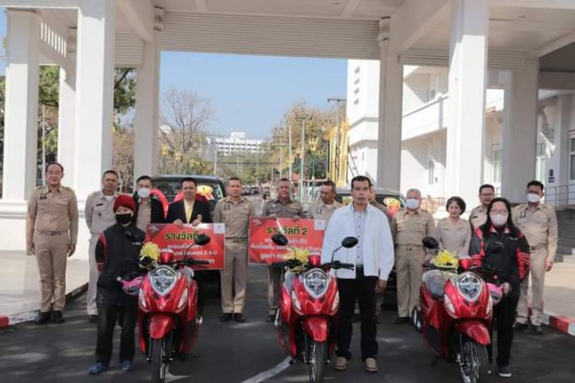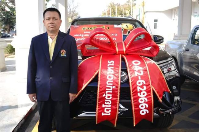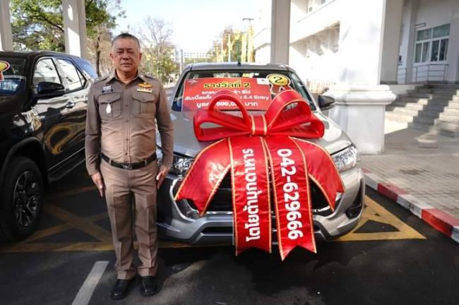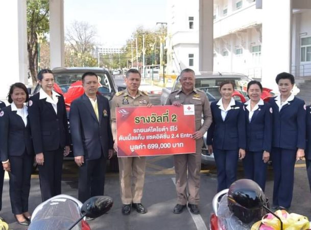 จังหวัดมุกดาหาร ร่วมกับเหล่ากาชาดจังหวัดมุกดาหาร ส่งมอบรางวัล รถยนต์ Toyota Fortuner พร้อมรางวัลอื่นๆ ให้กับผู้โชคดีที่ซื้อสลากกาชาดประจำปี 2566 เมื่อวันนี้ 30 ม.ค. 2566 เวลา 09.00 น. บริเวณหน้าศาลากลางจังหวัดมุกดาหาร นายวรญาณ บุญณราช ผู้ว่าราชการจังหวัดมุกดาหาร พร้อมด้วยนางอัญชลี กัลมาพิจิตร นายกเหล่ากาชาดจังหวัดมุกดาหาร รองผู้ว่าราชการจังหวัดมุกดาหาร หัวหน้าส่วนราชการ และสมาชิกเหล่ากาชาดจังหวัดมุกดาหาร ร่วมส่งมอบรางวัลใหญ่ดังนี้ รางวัลที่ 1 รถยนต์ โตโยต้า ฟอร์จูนเนอร์ ลีดเดอร์ 2.4G เกียร์อัตโนมัติ ผู้โชคดีคือ นายสำเนียง สืบสา รับราชการครูที่โรงเรียนชัยปัญญาวิทยานุสรณ์ 124 ม.10 ต.บ้านเหล่า อ.คำชะอี จ.มุกดาหาร รางวัลที่ 2 รถยนต์ รีโว่ ดับเบิ้ลแค็บ แซดอิดิชั่น 2.4 Entry เกียร์ธรรมดา ผู้โชคดีคือพ.ต.อ.นภดล รักชาติ ผกก.ตม.จว.มุกดาหาร 100 ถ.เพชรเกษรม ต.หาดใหญ่ จ.สงขลา รางวัลที่ 3 จักรยานยนต์ ยี่ห้อ YAMAHA รุ่น FINO 125 CC. จำนวน 3 รางวัล ผู้โชคดีได้แก่ 1. นางสาวประภาพร แพงโสดา 65 ม.6 ต.บางทรายน้อย อ.หว้านใหญ่ จ.มุกดาหาร 2. นางสาวภรณ์ทิพย์ ปาแป้ง 63 ม.7 ต.นากอก อ. นิคมคำสร้อย จ.มุกดาหาร 3. นายวิทยา บุญรักษ์ 75 ม.3 ต.เหล่าสร้างถ่อ อ. คำชะอี จ.มุกดาหาร นายสำเนียง สืบสา ผู้ถูกรางวัลที่ 1 สลากกาชาดฯ ประจำปี 2566 กล่าวด้วยความตื้นตันใจว่า จากที่ทางโรงเรียนได้รับโควต้าไป 100 ใบ ตนซื้อทั้งหมด 28 เป็นเงิน 1,400 บาท ตนดีใจมากที่ถูก