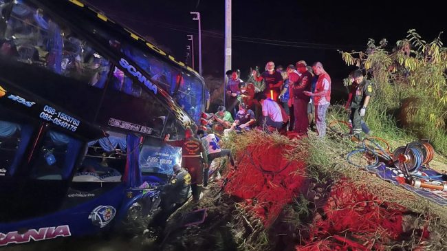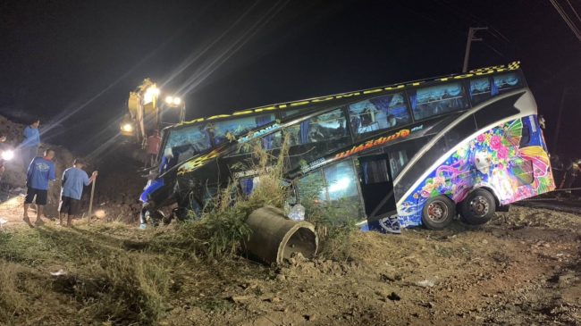 สุโขทัย รถบัสทัศนศึกษานักเรียนเฉี่ยวชนลงข้างทาง