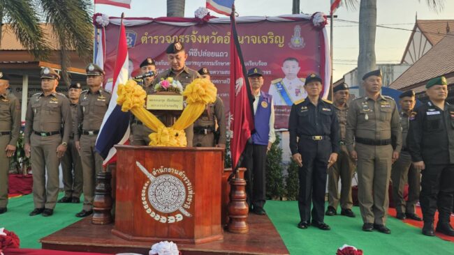 อำนาจเจริญ ผู้การฯ ปล่อยแถวตำรวจกวาดล้างอาชญากรรมรักษาความสงบเรียบร้อยในช่วงเทศกาลคริสต์มาสและปีใหม่ 2568
