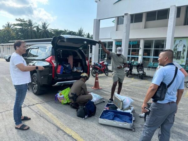 เมื่อวันที่ 13 มี.ค.2568 จึงได้ออกติดตามตัวมายืนยันกระเป๋าตามพิธีการศุลกากรมาดำเนินคดี แต่ไม่พบตัวและรับแจ้งจากพนักงานโรงแรมว่าคนต่างชาติรายดังกล่าวได้เดินทางออกไปแล้วตั้งแต่เช้าของวันที่ 14 มี.ค. 2568 ซึ่งสอดคล้องกับเวลาที่เดินทางไปเช็คอินที่สนามบินสมุยและทิ้งกระเป๋าไว้ ชุดจับกุมจึงได้สืบสวนจากการตรวจสอบกล้องวงจรปิดของโรงแรมพบว่าในเวลาที่ MR. AZEEM ออกจากโรงแรมมีคนต่างชาติสวมเสื้อสีขาวกางเกงขายาวสีน้ำตาล และเพื่อนอีกคน ได้เดินทางมากับรถยนต์นั่งส่วนบุคคลยี่ห้อโตโยต้า สีดำ หมายเลขทะเบียน ขต 1399 สุราษฎร์ธานี มารับพร้อมกับคนขับ เจ้าหน้าที่จึงได้สืบสวนพบว่าเป็นรถรับจ้างสาธารณะ(แกร็บ) ได้ไปรับคนต่างชาติมาจากโรงแรมแห่งหนึ่ง ในพื้นที่ ต.แม่น้ำ อ.เกาะสมุย จว.สุราษฎร์ธานี พร้อมกระเป๋าเดินทางใบใหญ่ และให้ขับรถไปรับเพื่อนที่โรงแรม THE STAY CHAWENG BEACH RESORT เพื่อไปส่งที่สนามบิน พร้อมกระเป๋าที่นำมาด้วยจากโรงแรมในพื้นที่ ต.แม่น้ำ เพื่อให้ MR.AZEEM ไปเช็คอินเพื่อเดินทางไปยังประเทศฮ่องกง และต่อเครื่องไปประเทศอังกฤษ เจ้าหน้าที่จึงได้สืบสวนติดตามตัว MR.AZEEM และชายต่างชาติดังกล่าวมาตลอด
