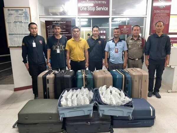 สืบเนื่องมาจากการขยายผลการจับกุมเครือข่ายขนกัญชาข้ามชาติ ที่ผู้ต้องหาชาวต่างชาติแล้วทั้งหมดจำนวน 13 ราย ซึ่งประกอบไปด้วยสัญชาติอังกฤษ 10 ราย มาเลเซีย 1 ราย เนเธอร์แลนด์ 1 ราย โรมาเนีย 1 ราย ในความผิดฐาน พยายามนำช่อดอกกัญชาออกไปนอกราชอาณาจักรโดยไม่ได้รับอนุญาต ซึ่งผู้ถูกจับทั้งหมดเป็นกลุ่มรับจ้างขนกัญชา ออกไปปลายทางประเทศอังกฤษ และปรากฏยังมีกระเป๋าอีกจำนวน 2 ใบที่ตกค้างและกำลังสืบสวนติดตามตัวคนต่างชาติเจ้าของกระเป๋าเพื่อมาดำเนินคดี เหตุเกิดในพื้นที่ท่าอากาศยานนานาชาติสมุย