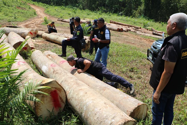 เมื่อเวลา 10.30 น.วันที่ 17 มีนาคม 2568 นายธีระยุธ ตันสกุล ผู้ใหญ่บ้าน ม.1 ต.ถ้ำน้ำผุด อ.เมืองพังงา ได้รับแจ้งจากชาวบ้านว่ามีการลักลอบตัดไม้ป่าจำนวนมากบนภูเขาพื้นที่บ้านต้นปาบ ม.1 ต.ถ้ำน้ำผุด อ.เมืองพังงา จึงแจ้งไปยังนายอำเภอเมืองพังงา ก่อนที่นายอภิเชษฐ์ ไพฑูลย์ ปลัดอำเภอ พร้อมด้วยนายประวิทย์ ช่วยหมุด หัวหน้าหน่วยป้องกันรักษาป่า ที่ พง.1 (พังงา) นำกำลังเข้าตรวจสอบ พบกองไม้ขนาดใหญ่จำนวน 61 ท่อน ความยาวท่อนละประมาณ4-5 เมตร