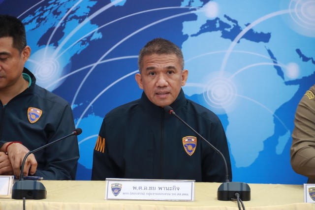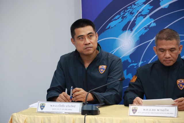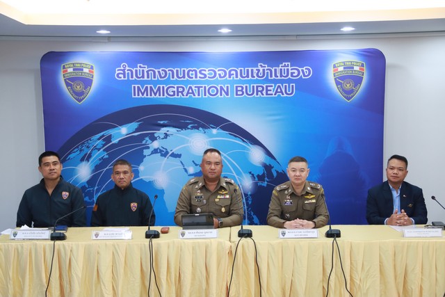 สำนักงานตรวจคนเข้าเมือง โดย พล.ต.ท.ภาณุมาศ บุญญลักษม์ ผบช.สตม., พล.ต.ต.พันธนะ นุชนารถ รอง ผบช.สตม. พร้อมด้วย พล.ต.ต.ภานพ วรธนัชชากุล ผบก.สส.สตม., พ.ต.อ.รัฐโชติ โชติคุณ รอง ผบก.สส.สตม., พ.ต.อ.แดนไพร แก้วเวหล รอง ผบก.สส.สตม., พ.ต.อ.สุรศักดิ์ สุรินทร์แก้ว รอง ผบก.สส.สตม., พ.ต.อ.เฉลิมชนม์ แหลมทอง รอง ผบก.สส.สตม., พ.ต.อ.ธวัชชัย นรินรัตน์ ผกก.1 บก.สส.สตม., พ.ต.อ.พิสิษฐ์ ศรีอ่อน ผกก.2 บก.สส.สตม., พ.ต.อ.ชย พานะกิจ ผกก.(สอบสวน) หน.กลุ่มงานสอบสวน บก.สส.สตม. ร่วมแถลงข่าวการจับกุมผู้ต้องหารายสำคัญ ดังนี้