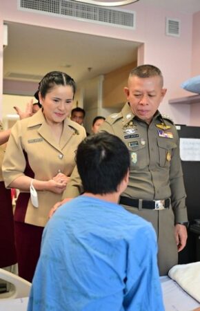 ล่าสุดวันนี้ (22 มีนาคม 2568) เวลา 10.00 น. พล.ต.ท.ธนายุตม์ วุฒิจรัสธำรง ผู้ช่วย ผบ.ตร. พร้อมด้วย คุณนภัสนันท์ วุฒิจรัสธำรงค์ กรรมการบริหารสมาคมแม่บ้านตำรวจ ระดับ ตร./ประธานที่ปรึกษาโครงการ“ครอบครัวตำรวจ เราไม่ทิ้งกัน” (ด้านตำรวจทุพพลภาพ) และ พล.ต.ท.ปิยะวัฒน์ เฉลิมศรี ผู้บัญชาการตำรวจภูธรภาค 9 (ผบช.ภ.9) พร้อมด้วย พล.ต.ท.หญิง อาภาพรรณ ชลศึกษ์ ประธานชมรมแม่บ้านตำรวจภูธรภาค 9 , พ.ต.อ.มนัส รุ่งนาค หัวหน้าสำนักงานสมาคมแม่บ้านตำรวจ และคณะสมาคมแม่บ้านตำรวจ เยี่ยมบำรุงขวัญกำลังใจ ด.ต.เกษม บัวเทศ ชุดเก็บกู้วัตถุระเบิด (EOD) กก.ปพ.ภ.จว.ปัตตานี ที่ได้รับบาดเจ็บจากการปฏิบัติหน้าที่ รักษาตัวที่โรงพยาบาลพระมงกุฎเกล้า