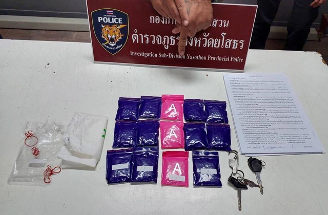 นายขจรศักดิ์ หรือตู้ (สงวนนามสกุล) อายุ 30 ปี บ้านเลขที่ หมู่ 6 ต.คำเตย อ.ไทยเจริญ จ.ยโสธร พร้อมด้วยของกลางยาบ้า จำนวน 2,800 เม็ด โดยกล่าวหาว่า“ จำหน่ายยาเสพติดให้โทษประเภท 1 (เมทแอมเฟตามีน) โดยการมีไว้ในครอบครองเพื่อจำหน่าย อันเป็นการกระทำเพื่อการค้า และเป็นการก่อให้เกิดการแพร่กระจายในกลุ่มประชาชน โดยไม่ได้รับอนุญาต และเสพยาเสพติดให้โทษประเภท 1 (เมทแอมเฟตามีน) โดยฝ่าฝืนต่อกฎหมาย”ตรวจยึดทรัพย์สินตามประมวลกฎหมายยาเสพติด พ.ศ.2564