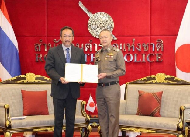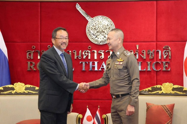 ผู้แทนสถานเอกอัครราชทูตญี่ปุ่น และสำนักงานตำรวจแห่งชาติญี่ปุ่น เข้าพบจเรตำรวจแห่งชาติ ขอบคุณตำรวจไทยที่จับกุมบุคคลตามหมายจับ และช่วยเหลือเหยื่อแก๊งคอลเซ็นเตอร์ชาวญี่ปุ่น พร้อมมอบเกียรติบัตรแก่คณะทำงาน