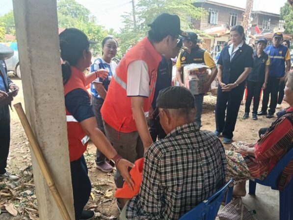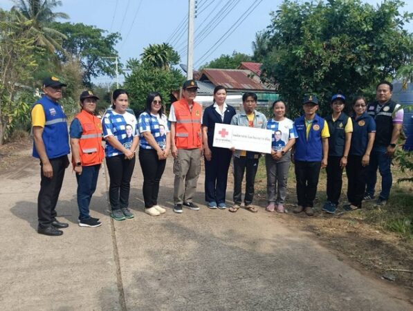 อำนาจเจริญ พ่อเมืองพร้อมนายกเหล่ากาชาดจังหวัดลงพื้นที่เร่งช่วยเหลือผู้ประสบวาตภัยพายุหมุนที่ผ่านมา