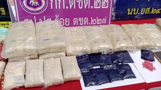 เปิดแถลงถึงผลของการที่ได้สนธิกำลังกันร่วมกันวางแผนเข้าจับกุมนายนายบอล อายุ 20 ปี ชาวอำเภอนาตาลกับนาย ตอ (นามสมมุติ)อายุ 17 ปี หมู่บ้านเดียวกัน โดย ร.ต.อ.ครองชัย ยนต์ดัน รองสว.(ป) กก.ตชด.22 หน.ชปข.ศป.ปส.ร้อย ตชด.227 รับคำสั่งจากผู้บังคับบัญชา ให้นำกำลังจำนวนหลายนายเข้าซุ่มสกัด หลังได้รับแจ้งจากสายลับว่า จะมีกลุ่มผู้ค้ายาเสพติด จะพากันมารับยาบ้าจากเครือข่าย บนถนนหลวง ระหว่างบ้านอูบมุง –บ้านแก้งเกลี้ยง ตำบลเขมราฐ อำเภอเขมราฐ จังหวัดอุบลราชธานี ในห้วงเวลาเย็นของวันที่ 2 เมษายน ที่ผ่านมา