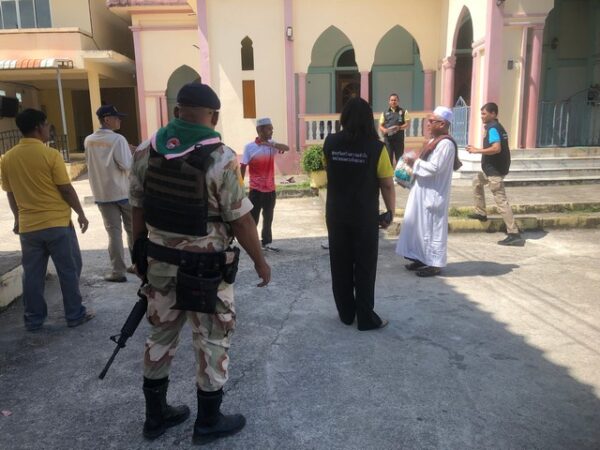 เมื่อวันที่ 8 เมษายน 2568 ที่มัสยิดนูรฮีดายะห์ (บ้านกูบังฆาเยาะ) หมู่ที่ 1 ต.ยะรม อ.เบตง จ.ยะลา นายอรุณ บือนา ผู้ใหญ่บ้านหมู่ที่ 1 ต.ยะรม ลงพื้นที่ร่วมกับ นายฐิศิรักษ์ ห่อหุ้ม ปลัดอำเภอ และ นางสาวอนัญญา กันเพ็ง ปลัดอำเภอ พร้อมด้วย ชุดเสริมสร้างความเข้าใจที่ 3 หน่วยเฉพาะกิจยะลา ผู้ช่วยผู้ใหญ่บ้าน บัณฑิตอาสา อสม.และชุดจิตอาสา ลงพื้นที่พบปะเยี่ยมเยียน นายกาเดร์ มานะรี อยู่บ้านเลขที่ 122/14 และนายสุดใจ เขียวนุ้ย อยู่บ้านเลขที่ 105 หมู่ที่ 1 ต.ยะรม อ.เบตง จ.ยะลา ซึ่งเป็นประชาชนกลุ่มเปราะบางในพื้นที่ (ผู้ป่วยติดเตียง) มอบยารักษาโรค และเครื่องอุปโภคบริโภคให้กับครอบครัว