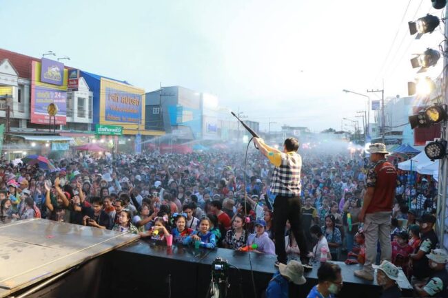 อำนาจเจริญ ผู้ว่าฯพาหม่วน”ควันหลงสงกรานต์ ส่งท้าย” ที่ถนนผ้าขาวม้า มหาสงกรานต์ ไทอำนาจเจริญ ประชาชน นักท่องเที่ยวคึกคักร่วมสนุกเล่นน้ำแบบชุ่มฉ่ำ ชมฟรีคอนเสิร์ตกว่า2หมื่นคนจนแน่นถนนสายน้ำของไทอำนาจในวันมหาสงกรานต์คึกคัก