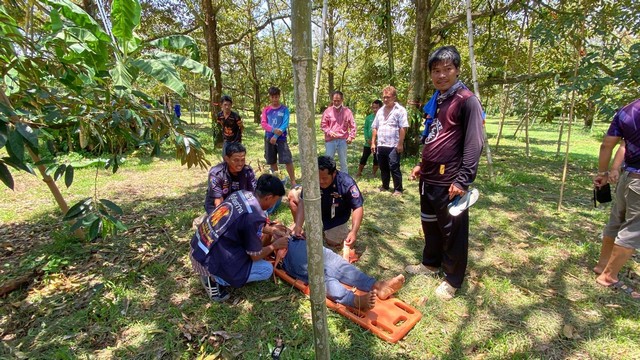 ในที่เกิดเหตุเป็นสวนทุเรียน มีคนงานตัดทุเรียนรับจ้างตัดทุเรียนในสวนทุเรียน แห่งนึงไม่ขอเอ่ยนาม ซึ่งเป็นคนงานของ ผู้รับซื้อทุเรียน กำลังสอยทุเรียนด้วยไม้สอยสอยทุเรียน