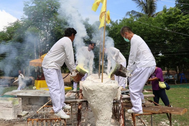 ชลบุรี-วัดป่าศรัทธาคุณนิมิต จัดงานเททองหล่อพระ 3 สมัย และทอดผ้าป่าสามัคคี ยอด 554,810 บาท
