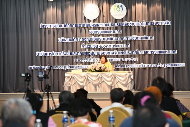 กล่าวว่า โครงการพัฒนาศักยภาพอาสาสมัครและแกนนำชมรมเครือข่ายเพื่อผู้บกพร่องทางจิต เขตกรุงเทพมหานคร จัดขึ้นเพื่อให้อาสาสมัครและแกนนำชมรมเครือข่ายในเขตกรุงเทพมหานครได้รู้ทิศทางการดำเนินงานและสามารถจัดทำแผนการดำเนินงานร่วมกันได้อย่างมีคุณภาพ รวมทั้งสามารถเชื่อมโยงการทำงานร่วมกับหน่วยงานที่เกี่ยวข้องได้ทั้งในพื้นที่และนอกพื้นที่