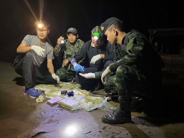 เนื่องจากวันที่ 4 พ.ค. 68 พันตรีคำรณ คุ้มเขต ผู้บังคับกองร้อย กองร้อยเฉพาะกิจทหารพราน 2105 มุกดาหาร สนธิกำลังเจ้าหน้าที่หน่วยงานข้างเคียงจัดกำลังและวางแผน เฝ้าตรวจตามจุดเพ่งเล็งและช่องทางธรรมชาติที่คาดว่ากลุ่มผู้ลักลอบจะใช้เป็นเส้นทางในการรับส่งยาเสพติด ยาบ้า บริเวณริมแม่น้ำโขง บ้านพาลุกา หมู่ที่ 4 ตำบลชะโนด อำเภอหว้านใหญ่ จังหวัดมุกดาหาร ภายหลังที่ได้รับแจ้งจากแหล่งข่าวว่า จะมีการรับส่งยาเสพติดยาบ้ากัน ที่บริเวณดังกล่าว จนกระทั่งช่วงเวลาประมาณเที่ยงคืน ชุดเฝ้าตรวจพบบุคคลกำลังแบกสิ่งของลักษณะเป็นกระสอบขึ้นมาจากริมแม่น้ำโขง และวางซุกช่อนไว้บริเวณพงหญ้าแล้วได้วิ่งหลบหนีไปอย่างเร็ว