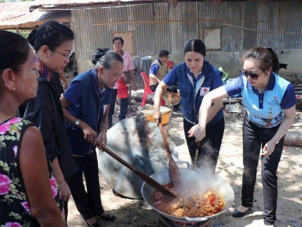 ขณะเดียวกัน นายอธิสรรค์ อินทร์ตรา ผู้ว่าราชการจังหวัดกาญจนบุรี พร้อมด้วย นางสาวกิตติยา จึงรุ่งเจริญกิจ นายกเหล่ากาชาดจังหวัดกาญจรบุรี ไม่ได้นิ่งนอนใจเพราะรับรู้ถึงความลำบากของผู้อพยพที่หรีร้อนมาพึ่งเย็น ในการนี้ เหล่ากาชาดจังหวัดกาญจนบุรี ได้นำเครื่องอุปโภค – บริโภค รวมถึงไข่ไก่ จำนวน 100 แผง ไปมอบให้กับผู้อพยพ อีกทั้งนางสาวกิตติยา จึงรุ่งเจริญกิจ ยังได้ลงมือประกอบอาหารด้วยตนแบบปรุงสุก แล้วส่งมอบต่อให้ผู้อพยพอีกด้วย