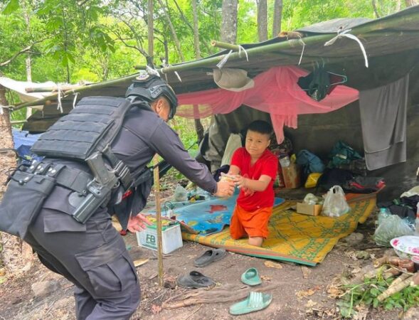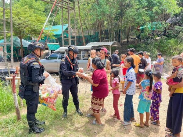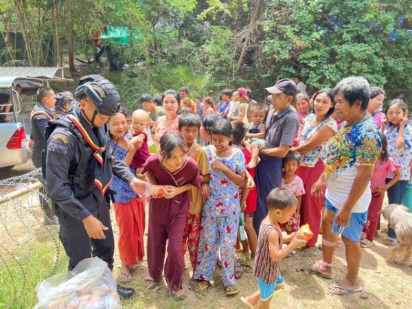 กาญจนบุรี – ทหารพราน-กาชาดกาญจน์ แบ่งปันน้ำใจให้ผู้อพยพ หนีร้อนมาพึ่งเย็น ที่ชายแดนกาญจน์