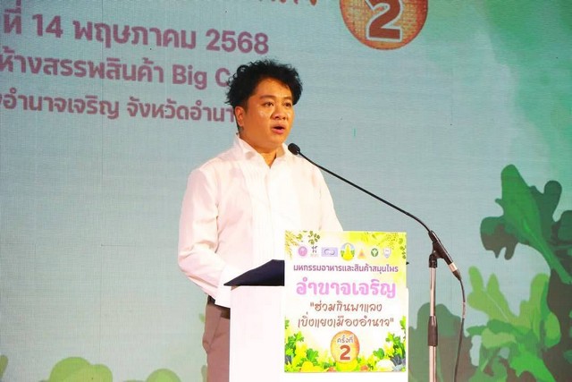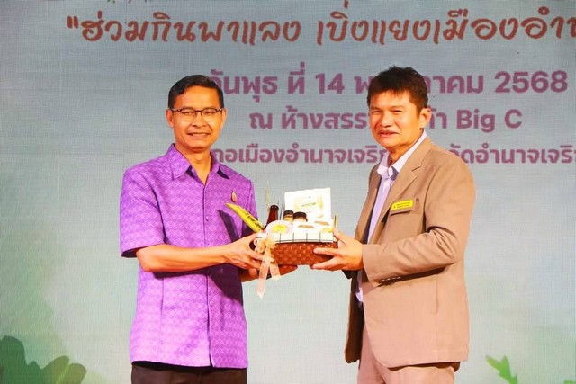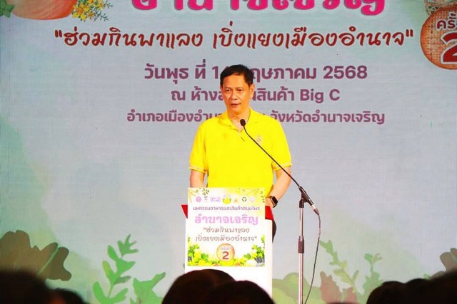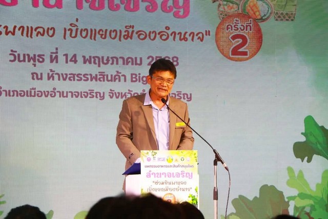 วันที่ 14 พฤษภาคม 2568 เวลา 18.00 น. ณ ห้างบิ๊กซี สาขาอำนาจเจริญ นายเทพรัตน์ ตันตยานนท์ รองผู้ว่าราชการจังหวัดอำนาจเจริญ เป็นประธานเปิดงาน มหกรรมเมืองสมุนไพร “ฮ่วมกินพาแลง เบิ่งแยงเมืองอำนาจ” ครั้งที่ 2 ซึ่งจัดโดยมหาวิทยาลัยอุบลราชธานี ภายใต้ชุดโครงการวิจัย “การพัฒนาพื้นที่เพื่อแก้ไขปัญหาความยากจนบนฐานเศรษฐกิจชุมชน จังหวัดอำนาจเจริญ ระยะที่ 2 ปีที่ 2” โดยมี ผู้แทนหน่วยงานราชการ ภาคเอกชน วิสาหกิจชุมชน และประชาชนเข้าร่วมกิจกรรม