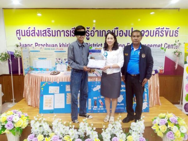 คุมประพฤติประจวบมอบทุนสงเคราะห์การศึกษาผู้ถูกคุมพร้อมจับมือ สกร.ยกระดับความรู้ ส่งเสริมต่อยอดจนสำเร็จการศึกษา