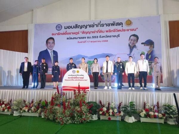 รบ.ที่ 553 ต.สวนผึ้ง อ.สวนผึ้น จำนวน 5 แสนกว่าไร่ ทางด้านรมช.กระทรวงการคลัง กล่าวแสดงความยินดีกับพี่น้องประชาชนที่ได้รับเอกสารสัญญาเช่าที่ดิน ในครั้งนี้ ว่า รัฐบาลนายกแพทองธาร ชินวัตร นายกรัฐมนตรี เคยให้สัญญากับประชาชนไว้ว่า คนไทยมีเกียรติมีศักดิ์ศรีไปพร้อมๆกัน จึงได้มีวันนี้ด้วยการมอบเอกสารสำคัญที่จะช่วยให้ประชาชน ได้ทำมาหากินอย่างสะดวกสบายและสามารถนำเอกสารไปยื่นต่อราชการในการขอบ้านเลขที่ ขอน้ำขอไฟ และประกอบเอกสารสำคัญๆอื่นๆที่ทางราชการ ต้องใช้ เพื่อให้ประชาชน ได้มีสิทธิเท่าเทียมกัน นอกจากนี้ รัฐบาลยังมีแนวคิดที่จะจัดสรรให้ประชาชนซื้อหวยเกษตร สามารถถูกรางวัลเงินล้านได้และยังเป็นการเก็บออมได้ 2 ระบบ คือได้ลุ้นรางวัลและ ได้เก็บเงินจากที่หวยไม่ถูกเมื่ออายุ60 ปีก็สามารถรับเงินหวยที่ซื้อแล้วไม่ถูกในช่วงอายุ 60 ปีต่อไปไว้ใช้จ่าย ในช่วงวัยชราอีกด้วย ราช.กระทรวงการคลังกล่าว.