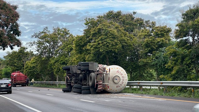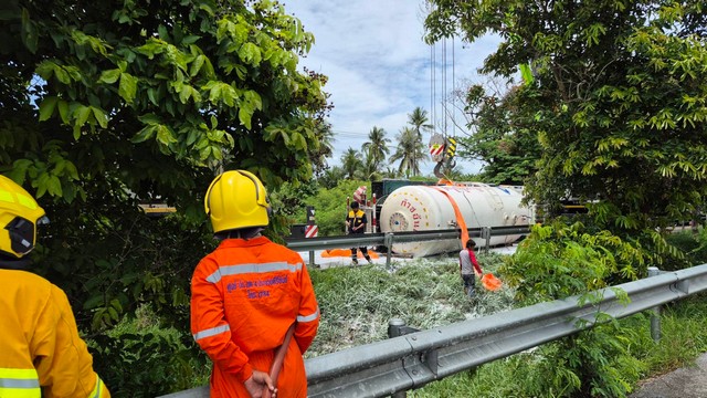 ประจวบคีรีขันธ์ _ เกิดเหตุรถบรรทุกก๊าซ LPG น้ำหนัก 10 ตัน พลิกคว่ำบน ถ.เพชรเกษม ฝั่งขาล่องใต้ จนท.เร่งกู้