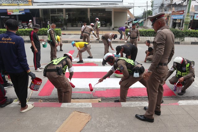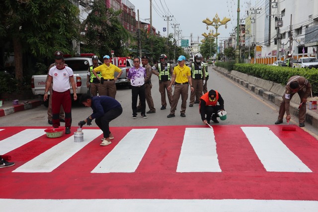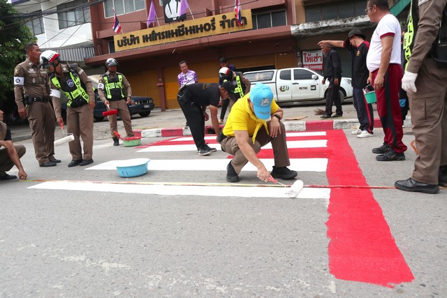 วันนี้ 3 มิถุนายน 2568 ผู้สื่อข่าวรายงานว่า พันตำรวจเอกสุรยุทธ เมฆมังกร ผู้กำการสถานีตำรวจภูธรจังหวัดกาญจนบุรี พันตำรวจโทโชคชัย ไทยเจริญ รอง ผกก.จราจร สภ.เมืองกาญจนบุรี นายธนวัฒน์ ปฐมสีมากุล รองปลัดเทศบาล รักษาราชการแทนปลัดเทศบาล ปฏิบัติหน้าที่นายกเทศมนตรีเมืองกาญจนบุรี นายชำนาญ แตงจุด หัวหน้าสำนักงาน ป้องกันและบรรเทาสาธารณภัยจังหวัดกาญจนบุรี นายณรงค์ มุกดาแสงสว่าง ผู้อำนวยการโรงเรียนอนุบาลกาญจนบุรี นำเจ้าหน้าที่ในสังกัดร่วมกันทาสีข้ามทางม้าลายเพื่อความปลอดภัยของเด็กนักเรียน ผู้ปกครองและประชาชนผู้ข้ามทางบริลาย บริเวณถนนอู่ทอง ทางเข้าโรงเรียนอนุบาลกาญจนบุรี ถนนอู่ทอง ตำบลบ้านเหนือ อำเภอเมือง จังหวัดกาญจนบุรี เนื่องในโอกาสวันเฉลิมพระชนมพรรษา สมเด็จพระนางเจ้าฯพระบรมราชินี 3 มิถุนายน 2568