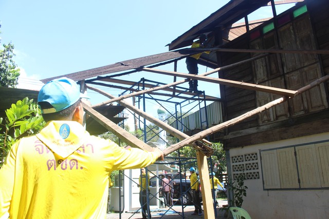 เมื่อวันที่ 5 มิ.ย.68 พ.ต.ท.อเนชา ตาวัน ผบ.ร้อย ตชด.445 ได้มอบหมายให้ จิตอาสา ตชด. ลงพื้นที่ให้ความช่วยเหลือประชาชน ที่ได้รับผลกระทบจากภัยทางธรรมชาติ วาตภัย ทำให้หลังคาบ้าน ของนายอาดัม คอแดะ บ้านเลขที่ 7 ถนนกาแป๊ะกอตอ ต.เบตง อ.เบตง จ.ยะลา ได้รับความเสียหาย โดยจิตอาสา ตชด. ได้ช่วยกันรื้อถอนซากปรักหักพัง เก็บกวาดและขนย้ายสิ่งของเครื่องใช้ และซ่อมแซมหลังคาบ้านเรือนประชาชน ที่ได้รับการสนับสนุนกระเบื้องหลังคา และวัสดุอุปกรณ์จากเทศบาลเมืองเบตง เพื่อช่วยเหลือบรรเทาความเดือดร้อนให้แก่พี่น้องประชาชนและฟื้นฟูคุณภาพชีวิต พร้อมมอบเครื่องอุปโภคบริโภค เพื่อสร้างขวัญกำลังใจแก่ผู้ประสบภัย