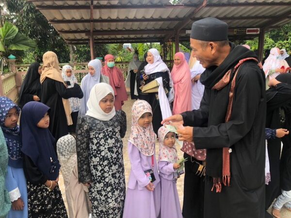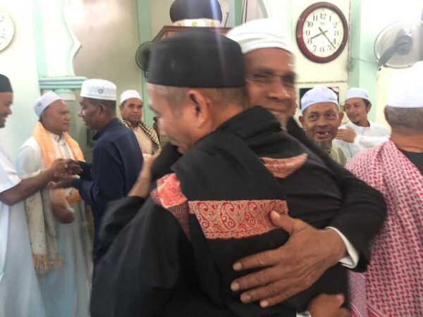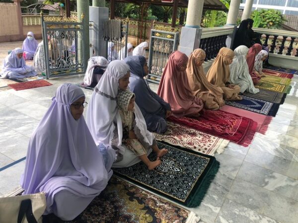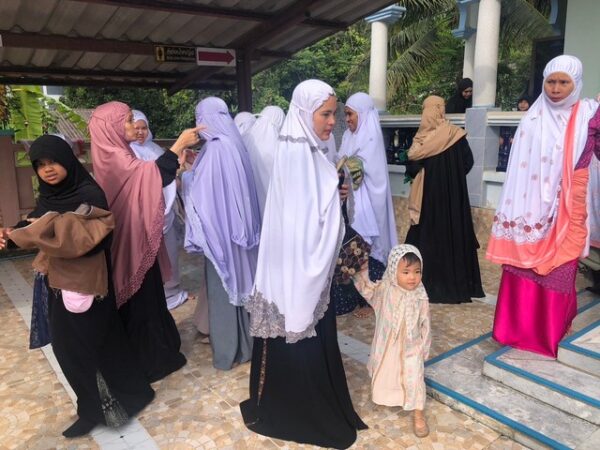 เมื่อวันที่ 7 มิ.ย.68 ที่มัสยิดนูรุลดิตตีฟาก บ้านกาแป๊ะ กม.2 อ.เบตง จ.ยะลา ชาวไทยมุสลิมได้เดินทางมาพร้อมบุตรหลานเพื่อมาร่วมพิธีละหมาด เนื่องในวันตรุษอีดิ้ลอัดฮา หรือวันฮารีรายอ (วันอีดใหญ่) ฮิจเราะห์ศักราช 1446 โดยมี โต๊ะอิหม่ามประจำมัสยิดพร้อมคณะกรรมการมัสยิด และชาวชุมชนกาแป๊ะ กม.2 เดินทางมาพร้อมน้ำดื่ม และขนม มาร่วมแจกจ่ายผู้มาละหมาดด้วย