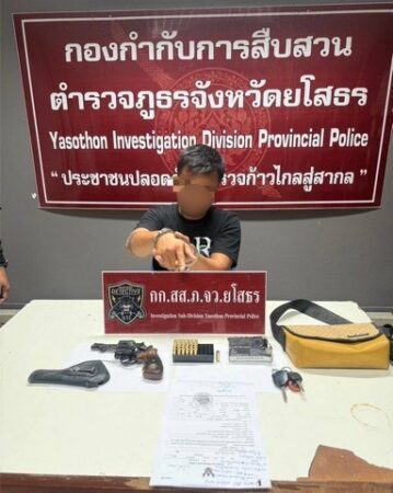 ต่อมาวันที่ 6 มิ.ย.68 เวลา 07.00 น.ชุดสืบสวนกก.สส.ภ.จว.ยโสธร นำโดย พ.ต.อ.ภูมิ ทองโพธิ์ ผกก.สืบสวน ภ.จว.ยโสธร พ.ต.อ.ธนันท์ชัย โสภาวะนัสนิติกุล ผกก.สภ.โพธิ์ทอง อ.เสลภูมิ จ.ร้อยเอ็ด พ.ต.ท.โชตินันต์ โชติเนตร รอง ผกก.สส.ฯ พ.ต.ท. วรวุฒิ นามมั่น สว.กก.สส.ฯ พร้อมชุดปฏิบัติการเสือดำ 651 กก.สส.ภ.จว.ยโสธร และ เจ้าหน้าที่ชุดสืบสวน สภ.โพธิ์ทอง อ.เสลภูมิ จ.ร้อยเอ็ด ทำการปิดล้อมตรวจค้น หมู่บ้านหนองผักแว่น หมู่ 8 ต.โพธิ์ทอง อ.เสลภูมิ จ.ร้อยเอ็ด พบตัวนาย ประกาศิต หรือเท่ มายิ้ม อายุ 23 ปี บ้านเลขที่ 159 หมู่ที่ 13 ต.กุดชุม อ.กุดชุม จ.ยโสธร