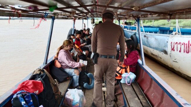 บ้านบอกเป็นการที่สูงเร็วมาก ด้านตรวจคนเข้าเมืองใส่ใจนักท่องเที่ยวปลอดภัยลงตรวจเรือโดยสารทุกครั้งก่อนออกจากฝั่งให้ทุกคนต้องสวมเสื้อทุกครั้งก่อนข้ามแม่น้ำโขง เมื่อวันที่14 มิถุนายน 2568ผู้สื่อข่าวรายงานสถานการณ์ของแม่น้ำโขงที่หน้าจุดผ่านแดนถาวรบ้านปากแซงตำบลพะลานอำเภอนาตาลจังหวัดอุบลราชธานีเนื่องจากพายุ“หวู่ติบ”เข้าสู่ประเทศไทยด้านจังหวัดอุบลราชธานีเมื่อวันที่12และวันที่13ติดต่อกันทำให้ระดับของแม่น้ำโขงได้ขยับตัวสูงขึ้นอย่างรวดเร็วชาวบ้านต่างจับตาเฝ้าระวังอย่างใกล้ชิด