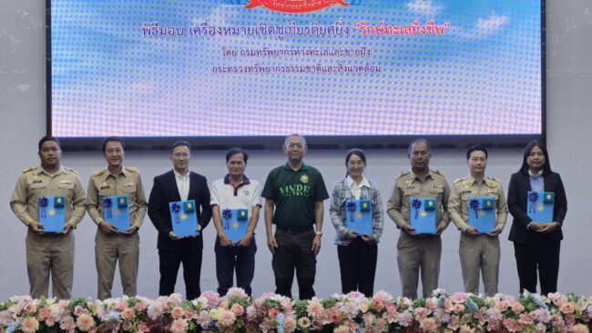 วันที่ 20 มิถุนายน 2568 กรมทรัพยากรทางทะเลและชายฝั่ง (ทช.) จัดประชุมความเข้าใจในบทบาทหน้าที่ของชุมชนชายฝั่ง และอาสาสมัครพิทักษ์ทะเล ในการอนุรักษ์และฟื้นฟูทรัพยากรทางทะเลและชายฝั่ง ครั้งที่ 3 โดยได้รับเกียรติจาก ดร.เฉลิมชัย ศรีอ่อน รัฐมนตรีว่าการกระทรวงทรัพยากรธรรมชาติและสิ่งแวดล้อม (รมว.ทส.) เป็นประธานการประชุม พร้อมมอบเข็ม “รักษ์ทะเลยิ่งชีพ” ให้แก่ผู้ที่ประกอบคุณงามความดีที่เป็นประโยชน์ต่อทรัพยากรทางทะเลและชายฝั่ง มอบเงินอุดหนุน และอุปกรณ์จัดเก็บขยะให้กับผู้แทนชุมชนชายฝั่งที่เข้าร่วมโครงการกับกรม ทช. และมอบบัตรประจำตัวให้แก่สมาชิกอาสาสมัครพิทักษ์ทะเล (อสทล.) ในการนี้มี นายนิพนธ์ จำนงสิริศักดิ์ รองปลัดกระทรวง ทส. นายเผด็จ ลายทอง รองอธิบดีกรมทรัพยากรทางทะเลและชายฝั่ง พร้อมด้วย นายกิตติพงศ์ สุขภาคกุล รองผู้ว่าราชการจังหวัดประจวบฯ และเจ้าหน้าที่ในสังกัดกรม ทช. ตลอดจนผู้แทนจากหน่วยงานที่เกี่ยวข้อง ชุมชนชายฝั่ง อาสาสมัครพิทักษ์ทะเลที่ทำงานร่วมกับกรมทรัพยากรทางทะเลและชายฝั่ง และประชาชนในพื้นที่ 3 อำเภอ ได้แก่ อำเภอสามร้อยยอด อำเภอกุยบุรี และอำเภอเมืองประจวบคีรีขันธ์ จำนวนกว่า 200 คน เข้าร่วมประชุม ณ โรงเรียนประจวบวิทยาลัย จังหวัดประจวบคีรีขันธ์