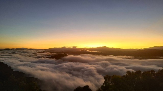 ยะลา-นักท่องเที่ยวชาวไทยและมาเลเซียแห่ชมแสงสีทองยามเช้า สัมผัสทะเลหมอกอัยเยอร์เวง แบบ 360 องศา พร้อมสูดอากาศบริสุทธิ์กลางป่าฮาลา-บาลา