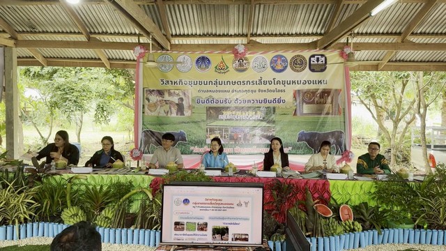 พร้อมด้วย นายสุพี วงศ์พิทักษ์ ประธานวิสาหกิจชุมชนกลุ่มเกษตรกรเลี้ยงโคขุนหนองแหน และสมาชิกร่วมให้การต้อนรับและให้ข้อมูล เกี่ยวกับผลการดำเนินกิจการเลี้ยงโคขุน ตามวิสัยทัศน์ที่ว่า ร่วมใจ ร่วมทุน พัฒนาโคขุน สู่สากล วิสาหกิจชุมชนแห่งนี้ก่อตั้งขึ้นเมื่อปี 2559 จากความมุ่งมั่นที่จะยกระดับการเลี้ยงโคเนื้อแบบดั่งเดิม สู่การเป็นผู้ผลิตเนื้อโคขุนคุณภาพสูงเกรดพรีเมี่ยม มีไขมันแทรกสูง มีมาตรฐานการผลิตตรงตามความต้องการของตลาด ที่ไม่เพียงแก้ปัญหาพ่อค้าคนกลาง แต่ยังสร้างความสามารถในการแข่งขันในตลาดโลกได้อย่างน่าทึ่ง