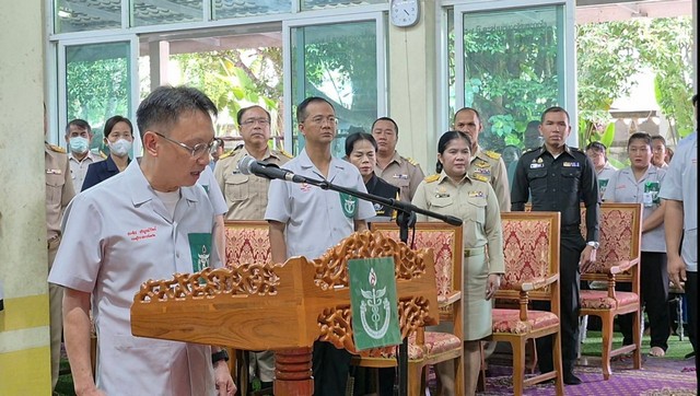 พร้อม หัวหน้าส่วนราชการ ข้าราชการ องค์กรปกครองส่วนท้องถิ่น เหล่ากาชาดจังหวัดฯ บุคลากรจากหน่วยงานสาธารณสุข อาสาสมัคร พอ.สว. ประจำจังหวัด ประชาชนและนักเรียน เข้าร่วมพิธีฯ