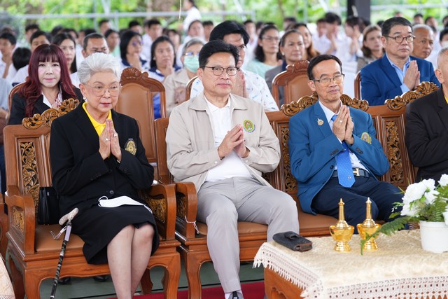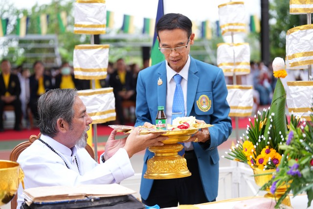 วันที่ 9 กรกฎาคม 2568 โรงเรียนสาธิตแห่งมหาวิทยาลัยราชภัฏหมู่บ้านจอมบึง จัดพิธีสร้างพระพุทธรูปประจำโรงเรียน พระพุทธมุนินทร์มหาวิชชาลัย ณ บริเวณโดมโรงเรียนสาธิตแห่งมหาวิทยาลัยราชภัฏหมู่บ้านจอมบึง มหาวิทยาลัยราชภัฏหมู่บ้านจอมบึง เมืองราชบุรี โดยมีพิธีพราหมณ์ในการบวงสรวงการหล่อพระ ซึ่งมีผศ.ดร.ชัยฤทธิ์ ศิลาเดช อธิการบดีมหาวิทยาลัยราชภัฏหมู่บ้านจอมบึงเป็นประธานฝ่ายฆราวาสจุดธูปเทียนบูชาฤกษ์ หน้าโต๊ะ เครื่องบวงสรวง พร้อมด้วยผศ.อรรถพล อุสายพันธ์ รองอธิการบดีมหาวิทยาลัยราชภัฏหมู่บ้าน จอมบึง อาจารย์ ดร.นพดล ทุมเชื้อ ผู้อำนวยการโรงเรียนสาธิตแห่งมหาวิทยาลัยราชภัฏหมู่บ้านจอมบึง ดร.วินัย รุ่งฤทธิเดช กรรมการสภามหาวิทยาลัยผู้ทรงคุณวุฒิ นายเรืองชัย เนตรปฐมพร ประธานคณะกรรมการส่งเสริมกิจการมหาวิทยาลัย (คสม.)และคณะ นายสัญญา ถิระเขมะกุล ที่ปรึกษานายกอบจ.ราชบุรี คณะอาจารย์ ครูโรงเรียนสาธิตฯ ผู้ปกครอง และนักเรียนร่วมในพิธี โดยมีพระภาวนาวิหารกิจ เจ้าอาวาสวัดเขาวัง เป็นประธานฝ่ายสงฆ์เจริญพระพุทธมนต์
