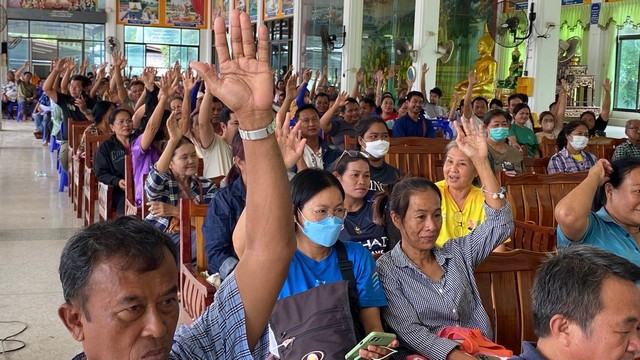 สจ พงศ์พิวิชญ์ ศรีทองคำ เขต1 อ.นายายอาม นางสาวพัชรินทร์ จินดาพรรณ นายกเทศมนตรีตำบลช้างข้าม ปลัดเทศบาล ต.ช้างข้าม นายพิษณุ แสงมณี กำนัน ต.ช้างข้าม ประธานกลุ่มผู้ใช้น้ำ ต.ช้างข้าม พร้อมผู้ใหญ่บ้านทุกหมู่ในตำบลช้างข้าม ผู้บริหารฯ และสมาชิก สท. ตำบลช้างข้าม ชาวสวนทุเรียนในพื้นที่ตำบลช้างข้าม ได้เดินทางมาลงชื่อ เป็นจำนวน 200 คน เพื่อเข้าประชาคมและประชุมในการดำเนินการในโครงการผัน น้ำดิบจากคลองวังโตนด