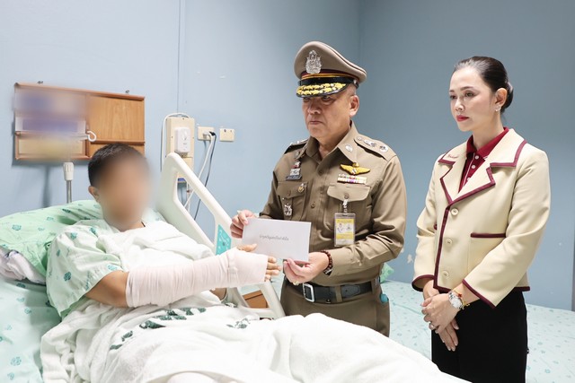 วันนี้ 3 ส.ค.68 เวลา 15.00 น. พล.ต.อ.กิตติ์รัฐ พันธุ์เพ็ชร์ ผบ.ตร. มอบหมาย พล.ต.ต.สุคนธ์ ศรีอรุณ ผบก.ภ.จว.สุรินทร์ และ คุณอมรรัตน์ ผลประเสริฐ ประธานชมรมแม่บ้านตำรวจภูธรจังหวัดสุรินทร์ เข้าเยี่ยมทหารและประชาชนที่บาดเจ็บจากเหตุปะทะตามแนวชายแดน พร้อมมอบเงินช่วยเหลือและให้กำลังใจ ณ โรงพยาบาล ผบ.ตร. ได้ฝากความห่วงใย และขอบคุณเจ้าหน้าที่ทุกนายที่ปฏิบัติหน้าที่ด้วยความกล้าหาญและเสียสละ เพื่อความสงบเรียบร้อยของประเทศ ขอให้ทุกท่านมีสุขภาพพลานามัยที่สมบูรณ์แข็งแรงโดยเร็ววัน