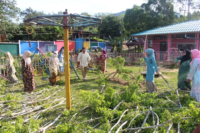 ด้าน น.ส.โสพิส หอมรส ผอ.โรงเรียน กล่าวว่า หลังจากทราบเรื่องก็ได้เข้ามาตรวจสอบและรายงานไปยัง สำนักงานเขตพื้นที่การศึกษาประถมศึกษายะล าเขต3 จากนั้นก็มีหน่วยงานต่างๆรวมถึงชาวบ้านเข้ามาตรวจสอบ ช่วยเหลือ ตัดต้นไม้ที่หักโค่นล้มทับสนามเด็กเล่น และกรีดขวางเส้นทางต่างๆ ในส่วนอื่นที่ได้รับความเสียหาย ก็จะมีอาคารอเนกประสงค์ บ้านพักครู จำนวน 3 หลัง ซึ่งตอนนี้ครุครู ทั้ง 7 คน ที่อาศัยอยู่ในบ้านพักของโรงเรียนทั้ง 3 หลัง ก็ต้องมาหลับนอนที่ห้องเรียนของนักเรียนไปก่อน เพราะต้องให้ช่างเข้ามาช่วยซ่อมแซมฝ้าเพดานและหลังคาบ้านพักให้เสร็จเรียบร้อยเสียก่อน