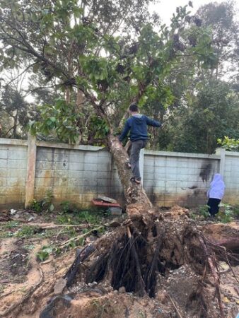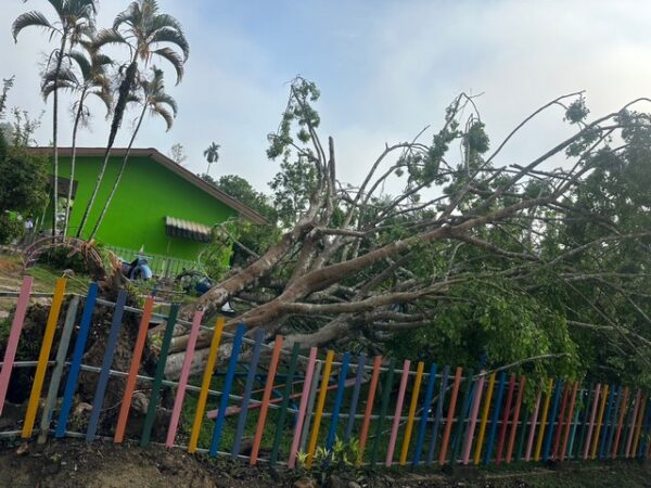 วันที่ 21 ส.ค.68 ที่โรงเรียนบ้านธารมะลิ ม.4 ต.อัยเยอร์เวง อ.เบตง จ.ยะลา หลังจากที่โรงเรียนเลิกนางสาวโสพิส หอมรส ผู้อำนวยการโรงเรียน คุณครู และนักเรียน ได้ช่วยกันทำความสะอาดเก็บเศษหลังคา เศษกิ่งไม้ที่หักหล่นอยู่ที่บริเวณสนามเด็กเล่นและบริเวณรอบของโรงเรียน หลังจากที่โดนพายุฝนพัดทำให้ต้นไม้ขนาดใหญ่หลายต้นหักโค่นล้มลงมา และทำให้หลังคาอาคารเรียน หลังคาบ้านพักครูถูกลมพัดปลิวว่อน ได้รับความเสียหาย จนทำให้คุณครู ต้องอาศัยห้องเรียนอนุบาลเป็นที่หลับนอนชั่วคราว เมื่อช่วงคืนวันที่ 18 สิงหาคมที่ผ่านมา