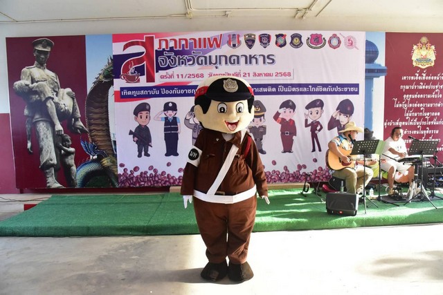 พร้อมด้วยเจ้าหน้าที่ตำรวจในสังกัดให้การต้อนรับ ผู้ว่า ทั้งนี้การจัดงานสภากาแฟจังหวัดมุกดาหาร มีวัตถุประสงค์เพื่อเป็นเวทีในการแลกเปลี่ยนเรียนรู้ รับฟังความคิดเห็น และข้อเสนอแนะแนวทางการดำเนินงาน รวมถึงการแก้ไขปัญหาต่าง ๆ ร่วมกันระหว่างส่วนราชการ หน่วยงานรัฐวิสาหกิจ องค์กรปกครองส่วนท้องถิ่น ภาคเอกชน และภาคประชาสังคม โดยครั้งนี้มีหน่วยงานในสังกัดสำนักงานตำรวจแห่งชาติเป็นเจ้าภาพ