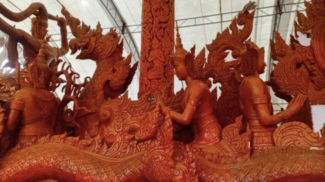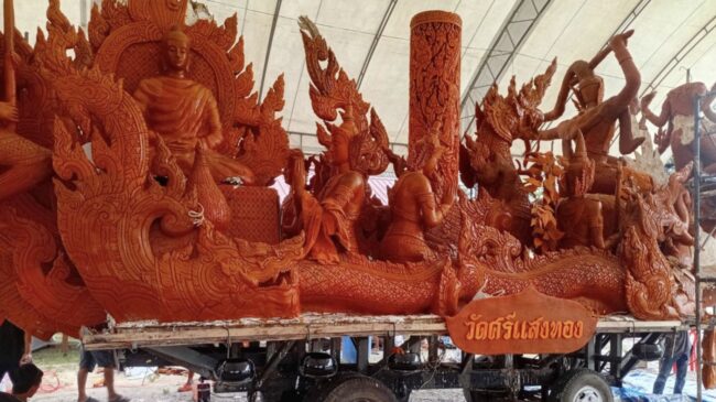 วันที่ 1 ตุลาคม 2568 นายกานต์ กัลป์ตินันท์ นายก อบจ.อุบลราชธานี เปิดเผยว่า ขอบคุณพี่น้องชาวสุราษฎร์ธานี ทุกท่านที่ให้การต้อนรับรถต้นเทียนพรรษาเป็นอย่างดี และรู้สึกดีใจที่ได้นำวัฒนธรรมแห่เทียนของชาวอีสาน คือ ประเพณีแห่เทียนพรรษา ซึ่งเป็นประเพณีของพุทธศาสนิกชน ที่จัดขึ้นในช่วงวันเข้าพรรษา เพื่อถวายต้นเทียนให้วัดเป็นแสงสว่างในการปฏิบัติธรรมของพระภิกษุสงฆ์ เป็นประเพณีที่ได้สืบต่อกันมาจนถึงปัจจุบัน เป็นเวลายาวนานกว่า 124 ปี จ.อุบลราชธานี ได้ทำต้นเทียนแกะสลัก และต้นเทียนแบบติดพิมพ์ ซึ่งมีความงดงาม จากช่างเทียน (ครูเทียน) ที่เป็นลูกหลานเมืองอุบลราชธานี สืบทอดกันมา นอกจากนี้มีการแสดงศิลปะวัฒนธรรมพื้นบ้าน และการแห่ขบวนเทียนอย่างยิ่งใหญ่ในงานบุญประจำปี ทั้งนี้ต้นเทียนพรรษา จากวัดศรีแสงทอง ถึงวัดพัฒนาราม (หลวงพ่อพัฒน์) ต.ตลาด อ.เมือง จ.สุราษฎร์ธานี