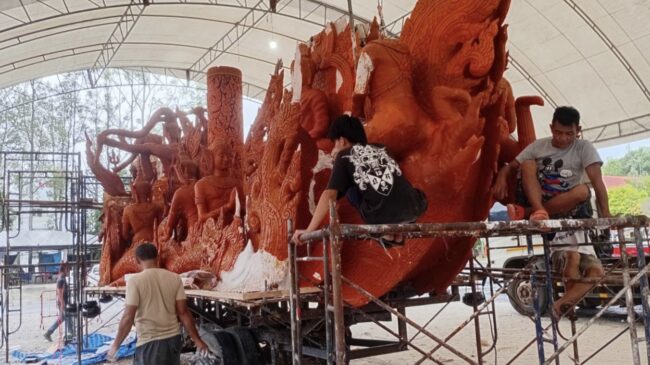นายก อบจ.อุบลฯ ย้ำ ต้นเทียนพรรษาตกแต่งเสร็จทันโชว์ในงานประเพณีชักพระฯ สุราษฎร์ธานี แน่นอน