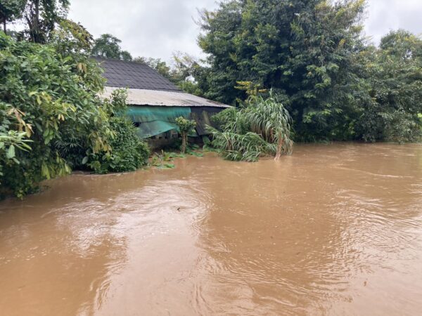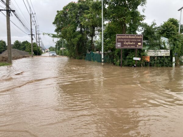 อำเภอฝาง จังหวัดเชียงใหม่ น้ำล้นทะลักขึ้นหมู่บ้านริมน้ำแล้ว