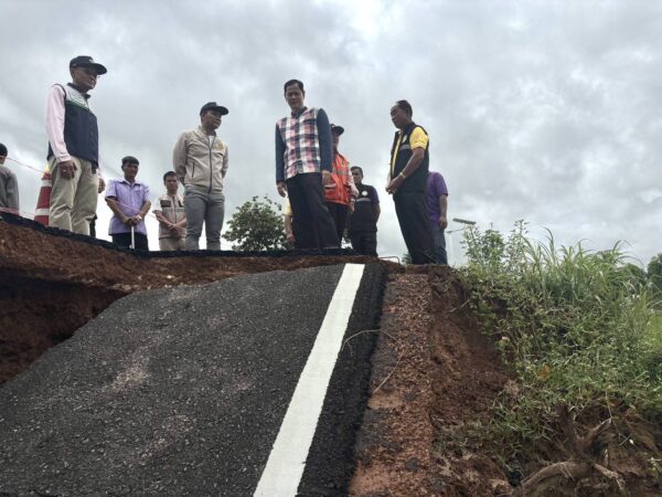 อิทธิพลของพายุฝนที่ตกกระหน่ำลงมาในพื้นที่อย่างต่อเนื่อง ส่งผลให้ถนนระหว่างหมู่บ้านที่จังหวัดอำนาจเจริญที่พึ่งสร้างเสร็จ เกิดชำรุด ทรุดตัวยาวกว่า 10 เมตร