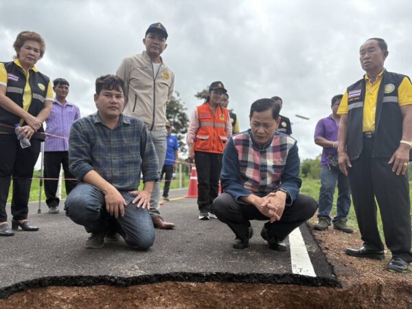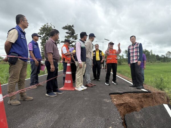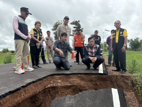 อำนาจเจริญ ฝนตกสะสมส่งผลให้ถนนที่จังหวัดอำนาจเจริญทรุดตัวยาวกว่า 10 เมตร