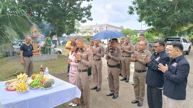 วันที่ 20 ต.ค. 2568 ที่สถานีตำรวจภูธรห้วยยาง อำเภอทับสะแก จังหวัดประจวบคีรีขันธ์ พ.ต.อ.วีระพัฒน์ เกตุษา ผกก.สภ.ห้วยยาง พ.ต.ท.สหธัญ กำบิลดีลิราช รอง ผกก.ป. พ.ต.ท.จตุพงษ์ แป้นเขียว รอง ผกก.สอบสวน พ.ต.ท.ธัญญะ จิตรจารุวงศ์ รอง ผกก.สส.สภ.ห้วยยาง พ.ต.ท.กฤษดา เหนี่ยวพึ่ง สวป.พ.ต.ต.พิเชษฐ์ วุฒาพานิชย์ สว.สส.พ.ต.ท.จักราวุธ กลางคาร พ.ต.ท.ทรงศักดิ์ รัศมี สว.อก.สภ.ห้วยยาง พร้อมด้วย นายชาตรี วณิชวรสกุล ประธาน กต.ตร.สภ.ห้วยยาง คณะกรรมการ กต.ตร. และข้าราชการตำรวจ สภ.ห้วยยาง พร้อมทั้งครอบครัว และแขกผู้มีเกียรติ ร่วมพิธีทำบุญตักบาตร เนื่องในงานวันตำรวจ ประจำปี 2568