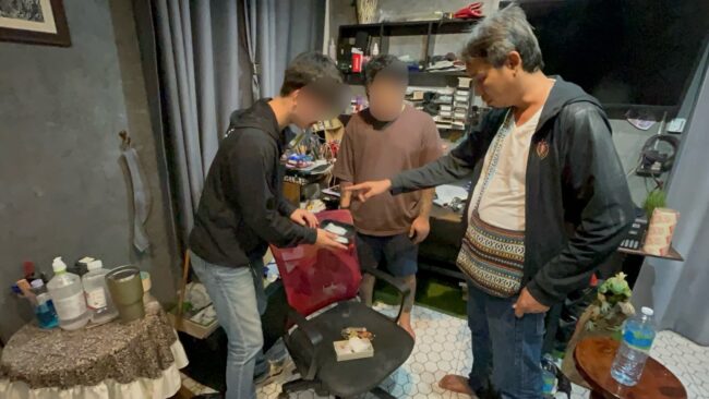 ได้ผู้ต้องหาจำนวน 2 ราย นายยุทธนา นายธนาวุฒิ พร้อมของกลางประกอบด้วย