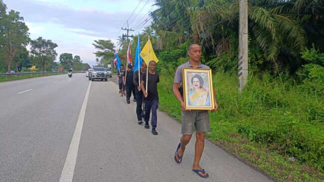 พระบรมศพสมเด็จพระพันปีหลวง ถวายความจงรักภักดี จากกรณี นายเสนอ เกิดแก้วหรือหนึ่ง อายุ 62 ปี ชาว อ.ท่าชนะ จ.สุราษฎร์ธานี เจ้าของสวนยางพารา พร้อมด้วย ลูกชาย และลูกเขย รวม 7 คน เดินทางออกจากบ้านพักในพื้นที่จังหวัดสุราษฎร์ธานี ตั้งแต่เมื่อเช้าวันที่ 26 ต.ค. 68 ที่ผ่านมา เพื่อเข้าร่วมถวายอาลัยและสักการะพระบรมศพ สมเด็จพระนางเจ้าสิริกิติ์ พระบรมราชินีนาถ พระบรมราชชนนีพันปีหลวง ณ พระบรมมหาราชวัง ล่าสุด เมื่อเวลา 08.00 น.วันที่ 5 พฤศจิกายน 2568 ครอบครัว นายเสนอ แก้วเกิด เดินทางเข้าพื้นที่ ต.อ่างทอง อ.ทับสะแก จ.ประจวบคีรีขันธ์ ขณะเดียวกันเมื่อช่วงคืนที่ผ่านมาทั้งหมดได้หยุดพักผ่อนหลับนอนที่ วัดรักดีคีรีวัน ต.ชัยเกษม อ.บางสะพานจ.ประจวบคีรีขันธ์ เขตรอยต่อ อ.ทับสะแก นายเสนอ แก้วเกิด กล่าวว่าตนและครอบครัว ออกเดินทางเป็นวันที่ 11 แล้ว ระยะทางกว่า 280 กม. ซึ่งการเดินไม่ได้ตั้งเป้าหมายว่าวันหนึ่งต้องเดินกี่กิโลเมตร มืดไหนนอนนั้น เดินไปเรื่อยๆเหนื่อยก็พัก ซึ่งการแสดงออกถึงความจงรักภักดีครั้งนี้เป็นครั้งแรกของคนในครอบครัว และไม่มีอุปสรรคใดๆระยะเวลาการเดินทางมีเพียงบางช่วงที่มีฝนตกลงมาอย่างหนักจำเป็นต้องหยุดเดิน คาดว่าจะเดินเท้าผ่านจังหวัดประจวบได้คงใช้เวลาไม่น้อยกว่า 5 วัน ซึ่งนี้เป็นวันที่ 3 แล้ว เนื่องจากจังหวัดประจวบตั้งแต่ อ.บางสะพานน้อยจนถึง อ.หัวหินมีระยะทางกว่า 220 ก.ม.ที่ผ่านมา การเดินเท้าครั้งนี้ ไม่ใช่เพียงการเดินทาง แต่คือการแสดงออกถึงความจงรักภักดีอย่างสุดหัวใจของคนในครอบครัว และพสกนิกรที่ต้องการน้อมรำลึกถึงพระมหากรุณาธิคุณของ แม่ของแผ่นดิน อย่างใกล้ชิดที่สุด